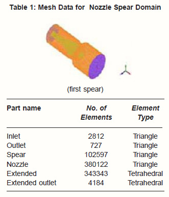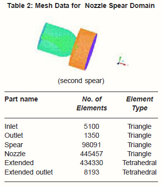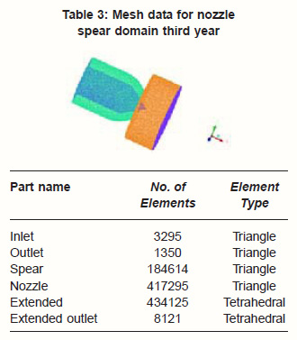 Table 3: Mesh data for nozzle spear domain third year