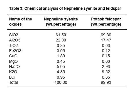 Table 3: Chemical analysis of Nepheline syenite and feldspar