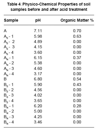 Table 4: Physico-Chemical Properties of soil samples before and after acid treatment