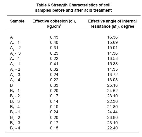 Table 6 Strength Characteristics of soil samples before and after acid treatment