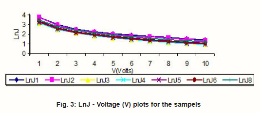 Figure 3: LnJ-Voltage (V) plots for the samples