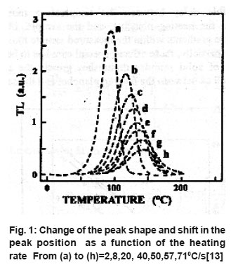 Kelly and his co workers2 discussed about the validity of the TL kinetic theories when high heating rates are involved. They found that the high heating rates upto 105 0C/sec do not invalidate the Shockley- Read statistics on which kinetic theories are based.
