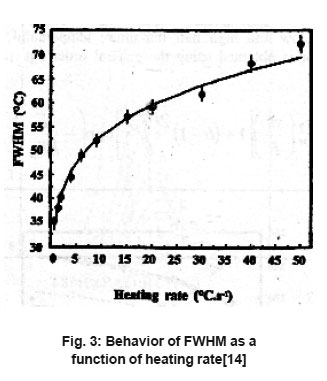 Figure 3: Behavior of FWHM as a function of heating rate[14]