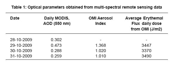 Table 1: Optical parameters obtained from multi-spectral remote sensing data