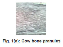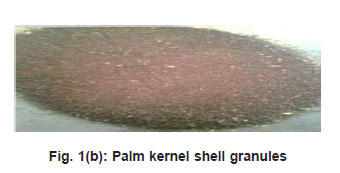 The cow bone obtained from the Abattoir was washed, cleaned properly and sun dried for 21 days. A burner was used to heat the bone. The dried bone was broken into pieces and was ground into granules, using the hammer mill. The palm kernel shell was oven dried at a temperature of 1050C to a moisture content of about 4% and then ground to granules with the hammer mill. The ground cow bone, palm kernel shell and iron filing were screened separately with sieves of appropriate size to particle size of 100µm diameters using vibrating sieve machine3. The cow bone granules, palm kernel shell granules and iron filing are shown in Figs. 1a,1b and 1c respectively.