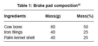 Production of Automobile Brake Pad Using Cow Bone as Base Material