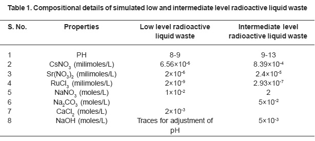 Table 1: Compositional details of simulated low and intermediate level radioactive liquid waste