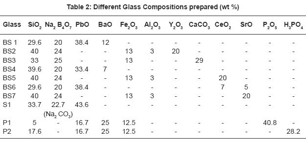 Table 2: Different Glass Compositions prepared (wt %)