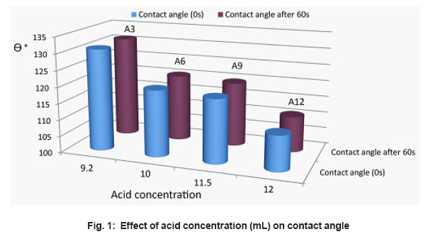 Figure 1: Effect of acid concentration (mL) on contact angle