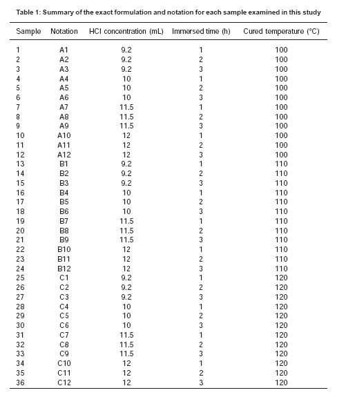 1 h in an oven. The exact formation and corresponding notation for each sample examined in this study are summarized in Table 1.