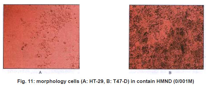 Fig. 11: morphology cells (A: HT-29, B: T47-D) in contain HMND (0/001M)