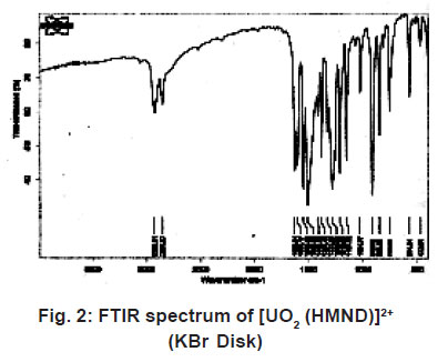 Fig. 2: FTIR spectrum of [UO2 (HMND)]2+ (KBr Disk)