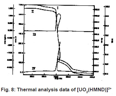 Fig. 8: Thermal analysis data of [UO2(HMND)]2+