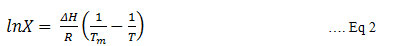 Where, X is the mole fraction, ΔH is the change in enthalpy, R is the gas constant, Tm is the melting point and T is the temperature at which the ideal solubility needs to be calculated.