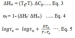 The ASD requires optimization of polymers and surfactants which can inhibit precipitation and re-crystallization of the drug in supersaturated solutions.98-100Different methodologies are employed to prepare ASD, such as rapid solvent evaporation, spray drying (SD) of solutions, freeze-drying (FD), or hot melt extrusion (HME).25, 101-103With the increase in demand of ASDs due to discovery of poorly soluble compounds have forced the equipment manufacturers to provide machineries which can be used to test these technologies at very small scale (as low as ~10 g material). These technologies can be easily scaled up to suffice large scale production requirements during commercialization state.104 One of the most challenging problem associated with ASD is its physical stability and risk of recrystallization to the most stable form. Efforts have been made to study and predict the stability of ASD. Zografi et al has reported that if the ASD is stored at a temperature 50 °C below glass transition temperature then the recrystallization kinetics can be slowed down significantly. The physical stability of ASD is dependent on maximum enthalpic recovery (eq. 3), extent of relaxation (eq. 4) and relaxation time (Eq. 5). 105