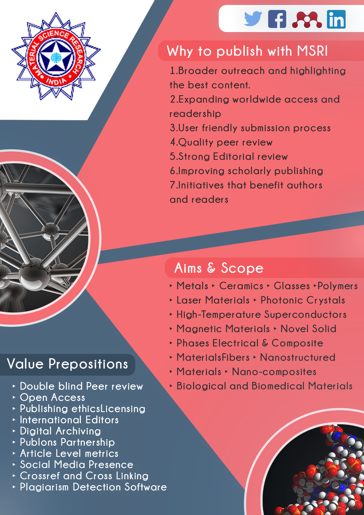 Material Science Research India is an international, Open Access and peer-reviewed journal, which was started in 2004 under publication “Oriental scientific publishing company” with the motive to provide a forum for worldwide scientific researchers and academicians to share findings on all aspects of Materials Science & Engineering and to disseminate innovative, relevant and useful information throughout the scientific horizon. It also aims to share research all over the world to promote and discuss various new issues and developments in different areas of materials science engineering.