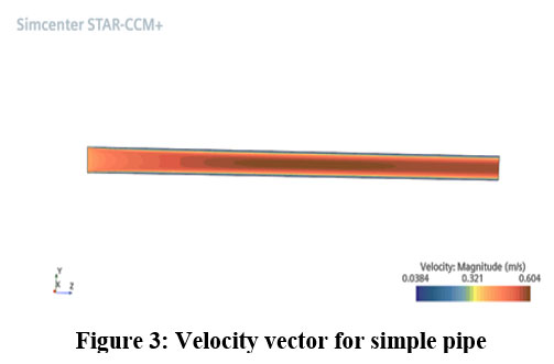 Figure 3: Velocity vector for simple pipe. |