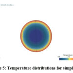 Figure 5 and Figure 6 illustrate the temperature distribution for both the simple pipe and the pipe with dimples. In this experimental setup, the wall of the pipe served as a constant heat source, generating 50 Watts of heat. The presence of dimples on the exterior surface of the pipe facilitated heat transfer from the outside to the inside, leading to a notable effect on the temperature distribution.