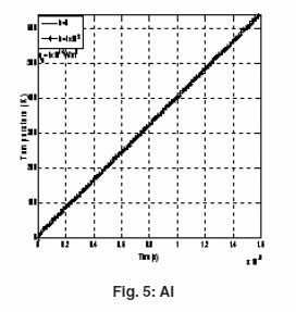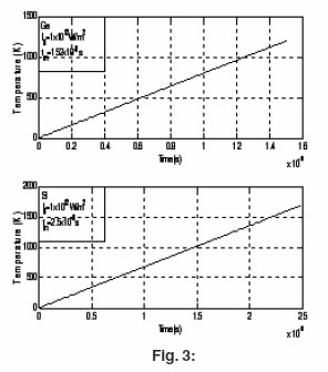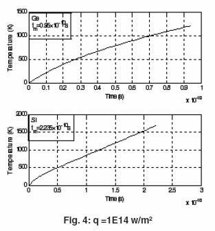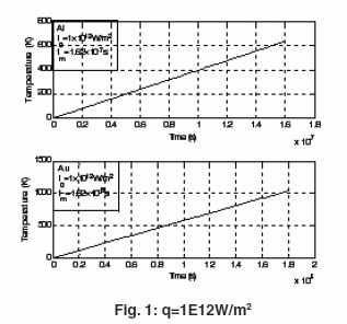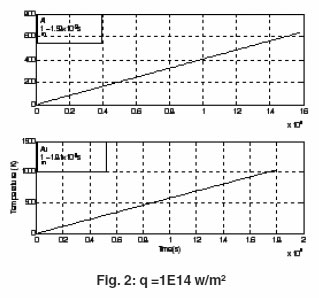 Each target is assumed to be of thickness d = 5 mm and is subjected to constant laser flux of irradiance qo = 1012, W/m2 and q0=1E 14 W/m2. To ensure good cooling conditions high value h = 105
