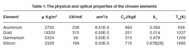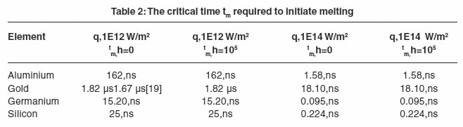 3. The values of the critical time required to initiate melting is strongly dependent on the incident power density and the value of the absorption coefficient of the irradiated surface.