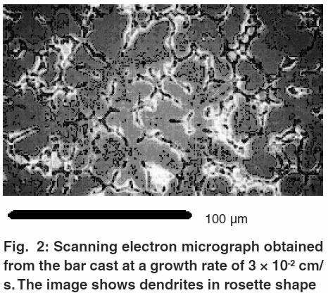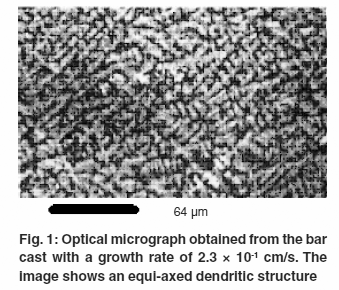 As can be seen, the structure evolution of the bars, starting from the wall of mould, can be explained if the “general constitutional super cooling criterion” is taken into account; that is, the liquid immediately in front of the interface is super cooled giving a dendritic structure as a result.