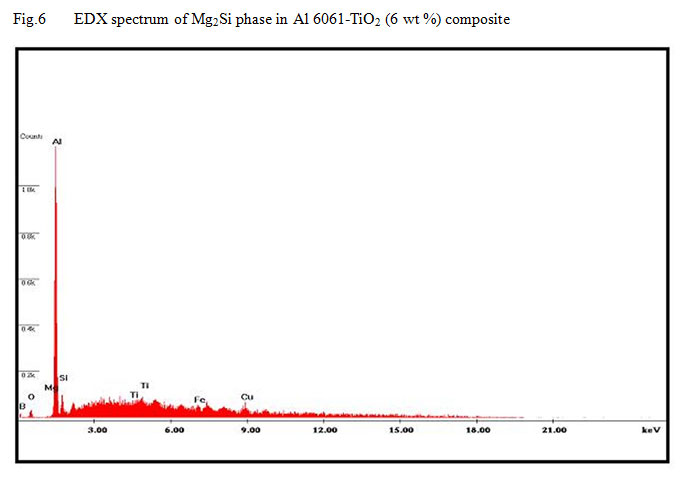 Figure 6: EDX spectrum of Mg2Si phase in Al 6061-TiO2 (6 wt %) composite