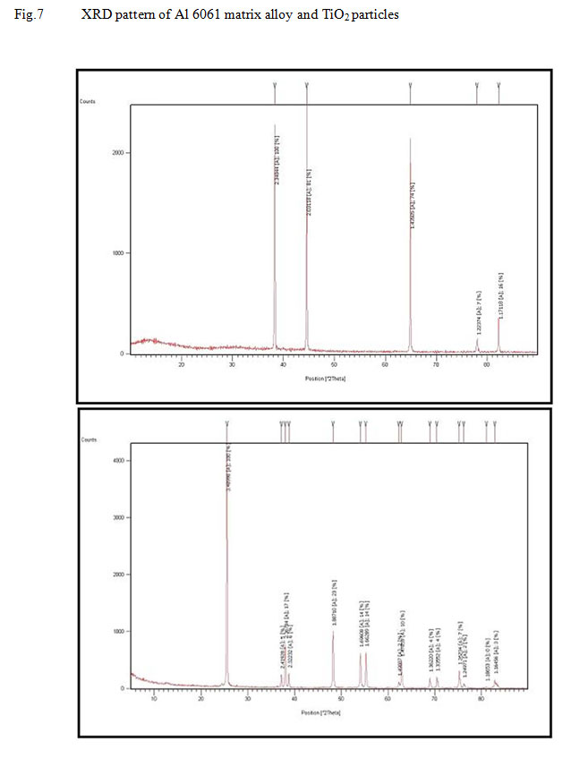 Figure 7: XRD pattern of Al 6061 matrix alloy and TiO2 particles