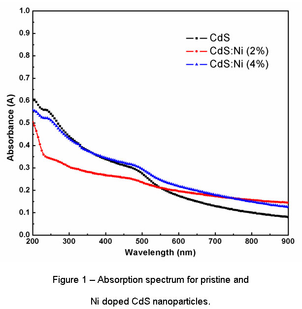 Figure 1 – Absorption spectrum for pristine and  Ni doped CdS nanoparticles.