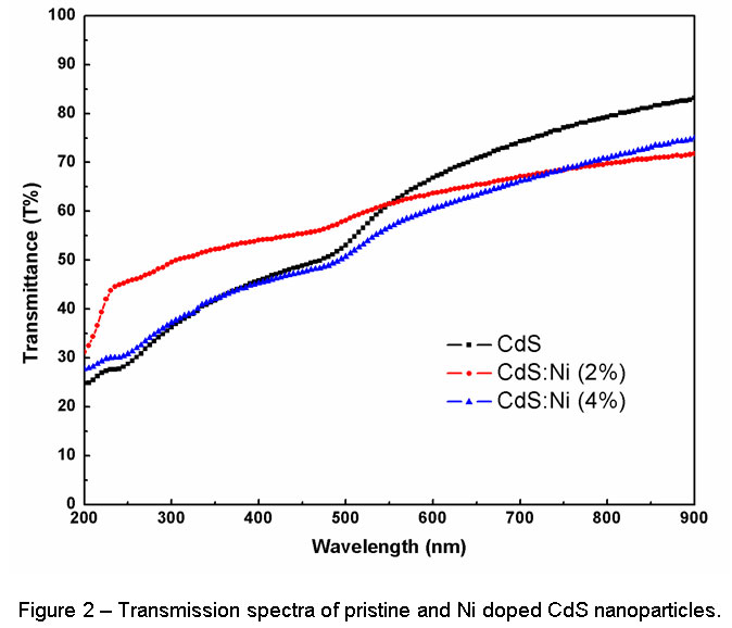 Figure 2 – Transmission spectra of pristine and Ni doped CdS nanoparticles