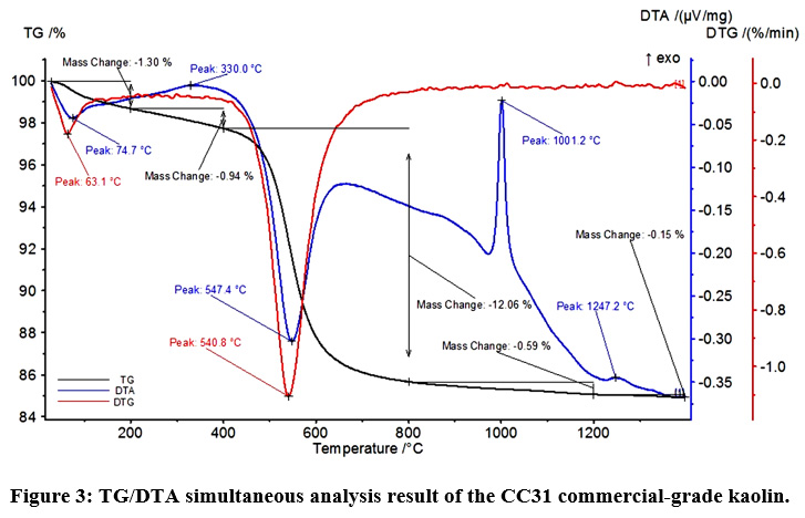 Figure 3: TG/DTA simultaneous analysis result of the CC31 commercial-grade kaolin.