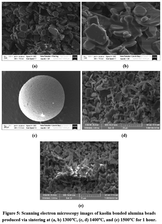 The author gratefully acknowledges to Ceramic Research Center (Eskisehir, Turkey) for TG-DTA analysis of kaolin, BUTAL (Bursa Test and Analysis Laboratory, Bursa, Turkey) for the SEM investigations of the alumina ceramic beads and Bursa Technical University Central Research Laboratory (Bursa, Turkey) for the XRD and SEM-EDX analysis.