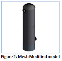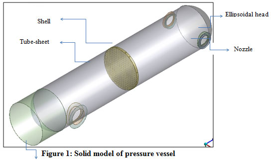 Following figure shows vertical solid pressure vessel Assembly design with two input nozzle which is at horizontal position & one output nozzle which is at lower portion of the vessel. Tube-sheet is mounted in the Shell. Initially we generate solid in Workbench model by using all calculated constraints and ASME Code Section-VIII, Div-II, and next meshing the solid model extra nodes are produced but ability of system not enough, so generate next model in surface. In surface modelling no. of nodes are cuts 40-60 % as match to solid model, which are beneath the ability to my system.
