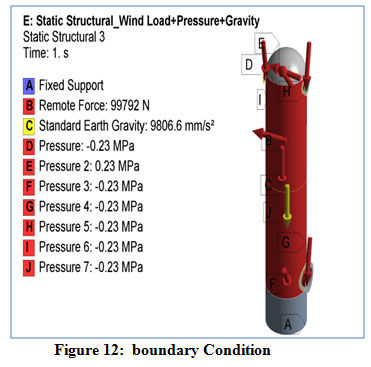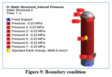 The structural analysis of the column is carried out in order to check whether the column structure is safe or not under the given boundary condition. Due to the presence of contact at the junction of reinforcement pad to the cylindrical shell of column the analysis become non linear static structural analysis. Due to large structure of column the weight of column is taken into account by applying gravity to the structure. The weight of the ethanol is simulated by scaling the density of structure.