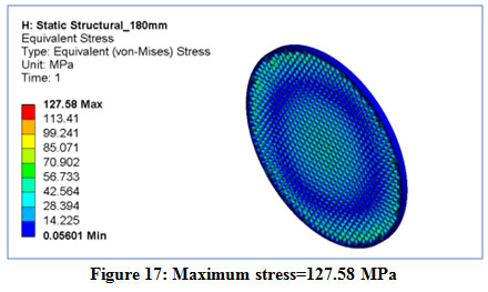 mm to found the optimum thickness. The stress at 180 mm thickness of tube-sheet is 127.58 MPa which is close and less than permissible stress. So the concluding Optimum thickness for tube-sheet at pressure of 0.23 MPa is decided at 180mm.
