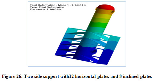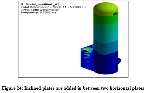 Maximum natural frequency of vertical column 7.3623 Hz is reieved. so we have to increase the natural frequency but we cannot increase the plate thickness more than 30mm so we can add secondary support to it as shown in fig.15