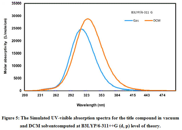 The Density functional theory (DFT) calculations were performed on an Intel (R) Core (TM) i7 personal computer using Gaussian -03 program package[17]. Thegeometry of the title compound was optimized by DFT /B3LYF method with 6-311++G (d, p) basis set level [18-20]. To explore the electronic properties, the theoretical UV-Visible spectra have been investigated by the TD-DFT method with a 6-311++G (d, p) basis in the gas phase.