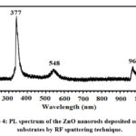 Figure 4: PL spectrum of the ZnO nanorods deposited onto P-Si substrates by RF sputtering technique. |