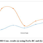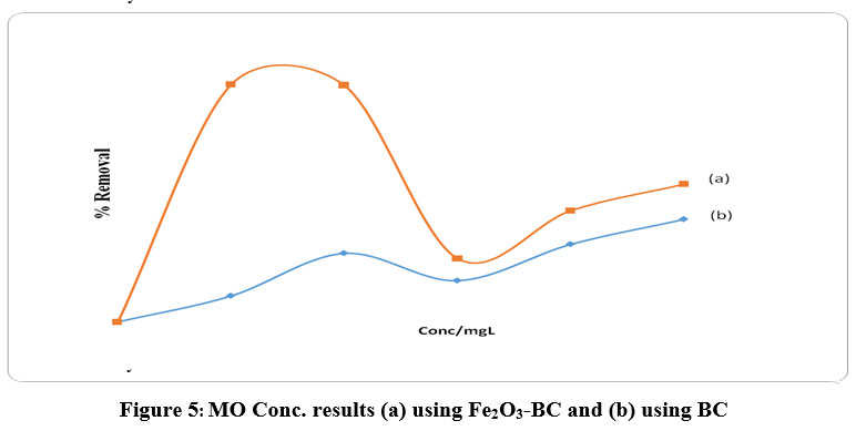 Figure 5: MO Conc. results (a) using Fe2O3-BC and (b) using BC.