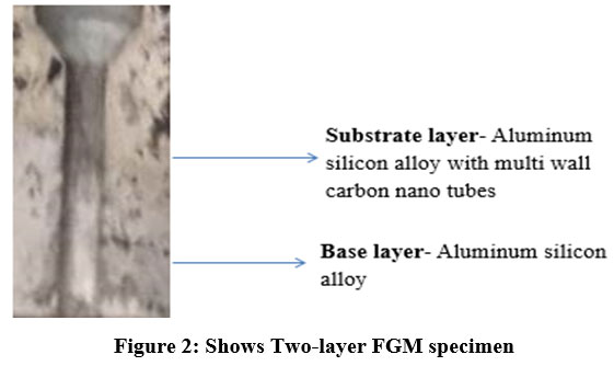 Two-layer functionally graded materials fabricated in 2-layers, as one layer is base AlSi and substrate layer is AlSi-0.75wt% MWCNT can be seen in Figure.2.