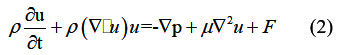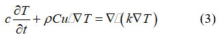Where p, c, k, P, F and μ is the density, specific heat capacity, thermal conductivity, pressure field, volume force vector and dynamic viscosity of paraffin, respectively T. is the temperature field.