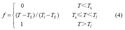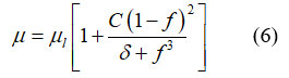 Based on the above assumptions, the relationship between dynamic viscosity μ and liquid fraction f is as follo
