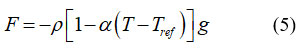 The volume force in the momentum equation (2) is given by temperature gradient caused by density differences. Satisfy the Boussinesq hypothesis, can be described as follows