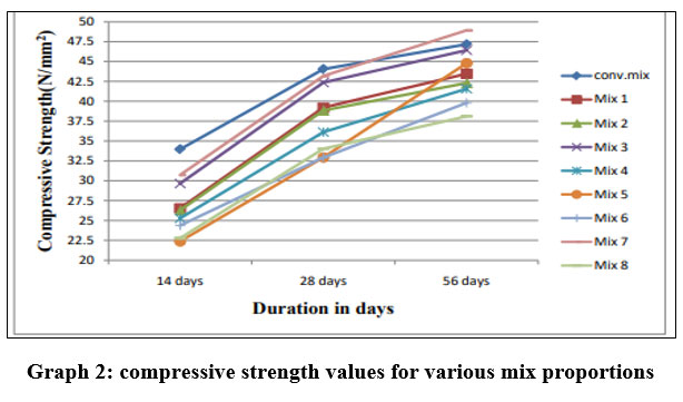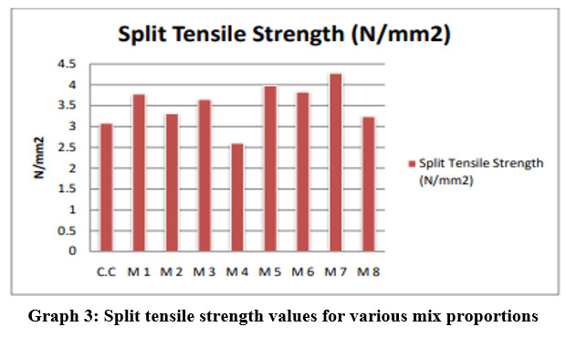 Graph 3: Split tensile strength values for various mix proportions |