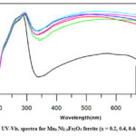Figure 5: UV-Vis. spectra for Mnx Ni1-xFe2O4 ferrite (x = 0.2, 0.4, 0.6, 0.8, 1.0). |