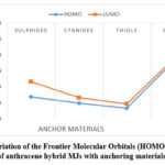 Figure 4: Variation of the Frontier Molecular Orbitals (HOMO and LUMO) of anthracene hybrid MJs with anchoring materials. |