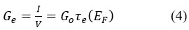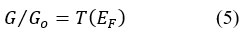 Where Go is the quantum of electrical conductance and has a value of 2e2/h ≈ 77.48μS, E is energy τe (E) is the transmission function for electrons passing from one electrode to the other electrode via the molecule (which can also be written as T) and EF is the Fermi energy (chemical potential) of the electrode material. Therefore, from equation (4) above, we have10;