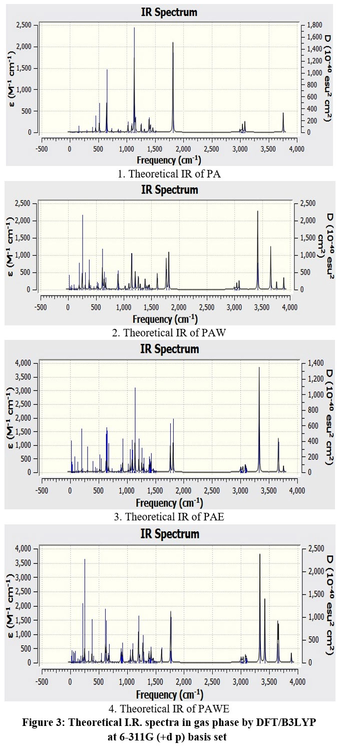 Figure 3: Theoretical I.R. spectra in gas phase by DFT/B3LYP at 6-311G (+d p) basis setClick here to View Figure