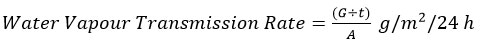 The amount of water vapor that may flow through a material in a day is measured by the water vapor transmission rate (WVTR). For this, we use a standard water vapour permeability cup. The cup was first filled with 7g of fused calcium chloride, and then an SPI film was used to seal the cup (5.4 cm outer diameter, 2.7 cm inner diameter). Then, the initial weight of the cup was recorded as (W0), and then placed in a dessicator maintained at 75% relative humidity (RH). After 24 h, we took the final weight (W1). The weight change (G = W1 – W0) corresponds to the amount of water vapour transmitted and was calculated using the formula: