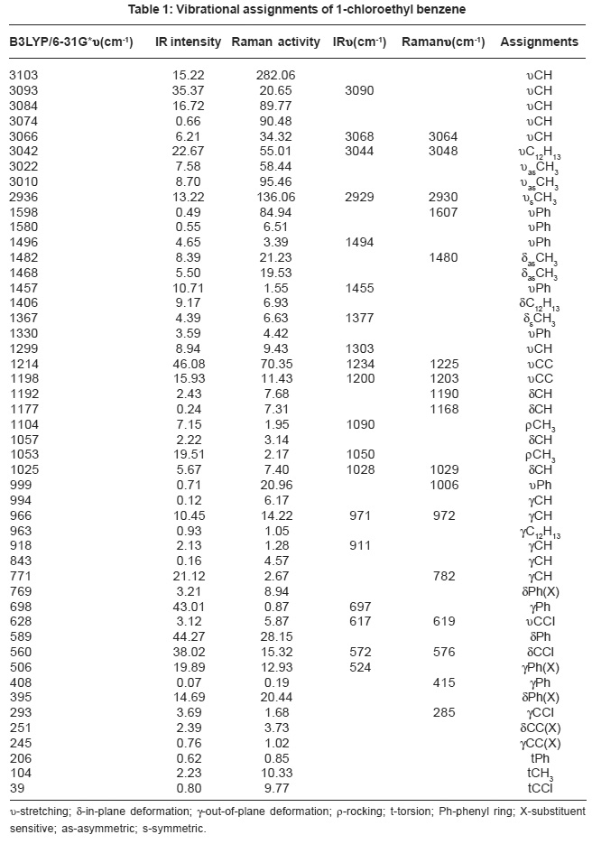 Table 1: Vibrational assignments of 1-chloroethyl benzene